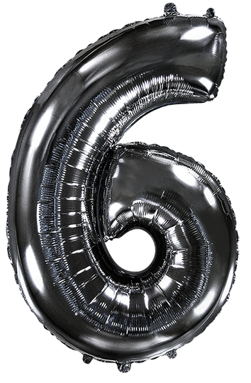 Gonfle jusqu'à environ 32".Remplir d'air ou d'hélium.Ballon en aluminium noir numéro "6" fabriqué par Flexmetal en Espagne.