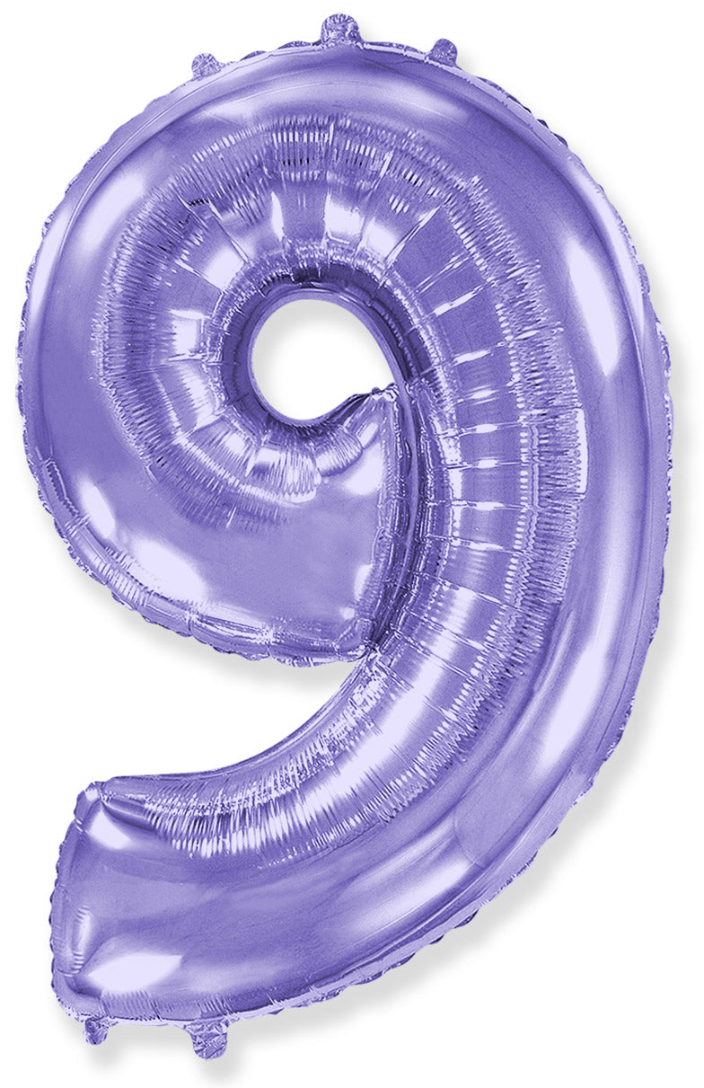 Gonfle jusqu'à environ 32".Remplir d'air ou d'hélium.Ballon en aluminium lilas numéro "9" fabriqué par Flexmetal en Espagne.