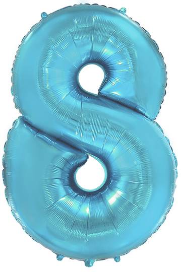 Ballon en aluminium Flexmetal bleu pastel numéro 8, gonflé (environ 101 cm, dégonflé)