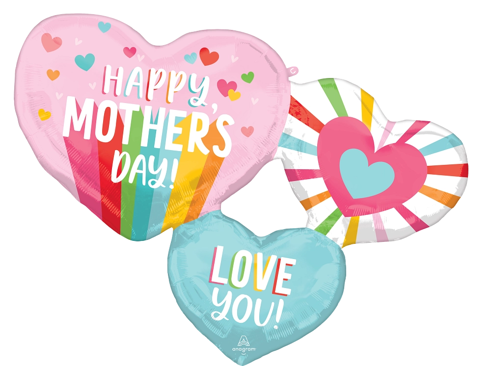 Ballon géant en aluminium à rayures et cœurs, 33 pouces, Happy Mother's Day