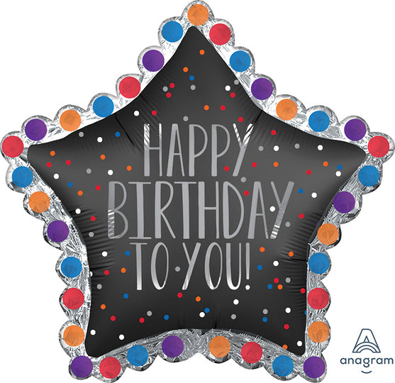 Ballon géant en aluminium avec étoile en satin, 34 pouces, joyeux anniversaire