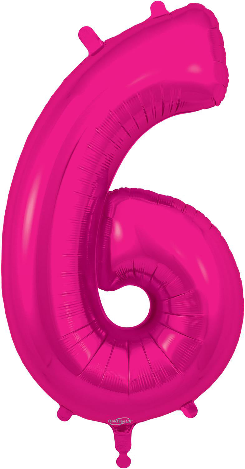 34" Number 6 New Pink Oaktree Brand Foil Balloon
