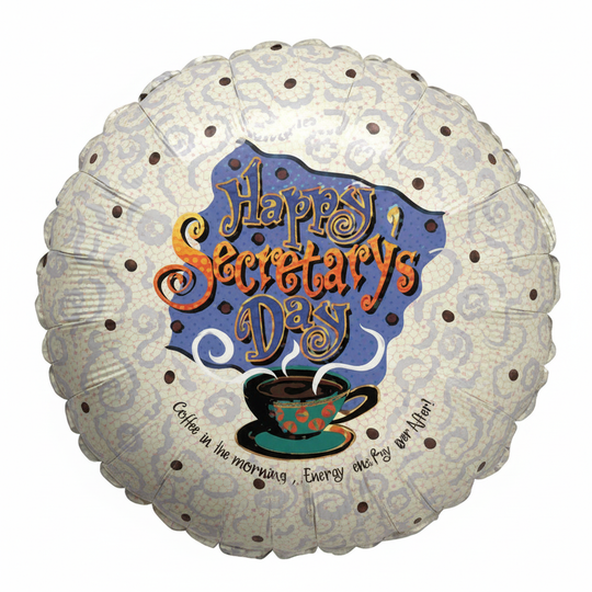 Celebrate Secretary's Day with this delightful 4" Happy Secretary Day Coffee Balloon. This round balloon features a charming design with a coffee cup illustration at the bottom and the words "Happy Secretary's Day" prominently displayed in vibrant colors. The background has a whimsical pattern that adds a festive touch to the overall look. Perfect for showing appreciation to the hardworking secretaries in your office!