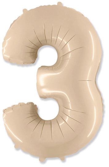 Gonfle jusqu'à environ 32". Remplir d'air ou d'hélium. Ballon en aluminium satiné crème numéro « 3 » fabriqué par Flexmetal en Espagne.