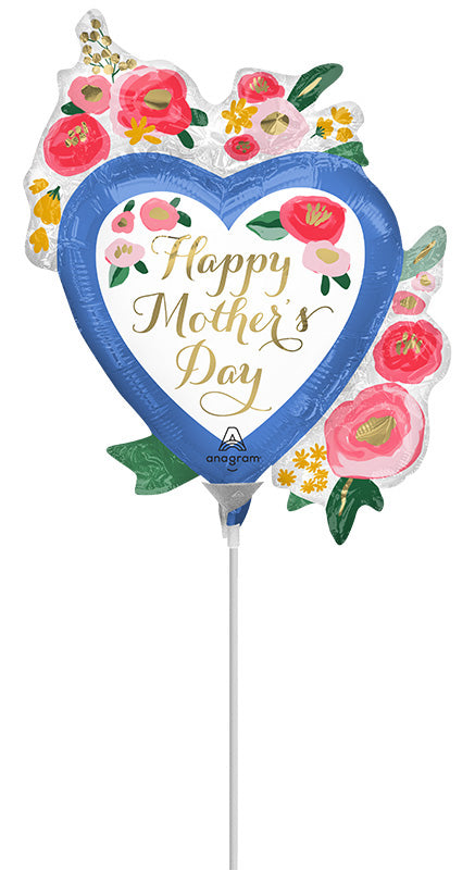 Airfill Only Ballon en aluminium avec cœur floral peint « Happy Mother's Day »