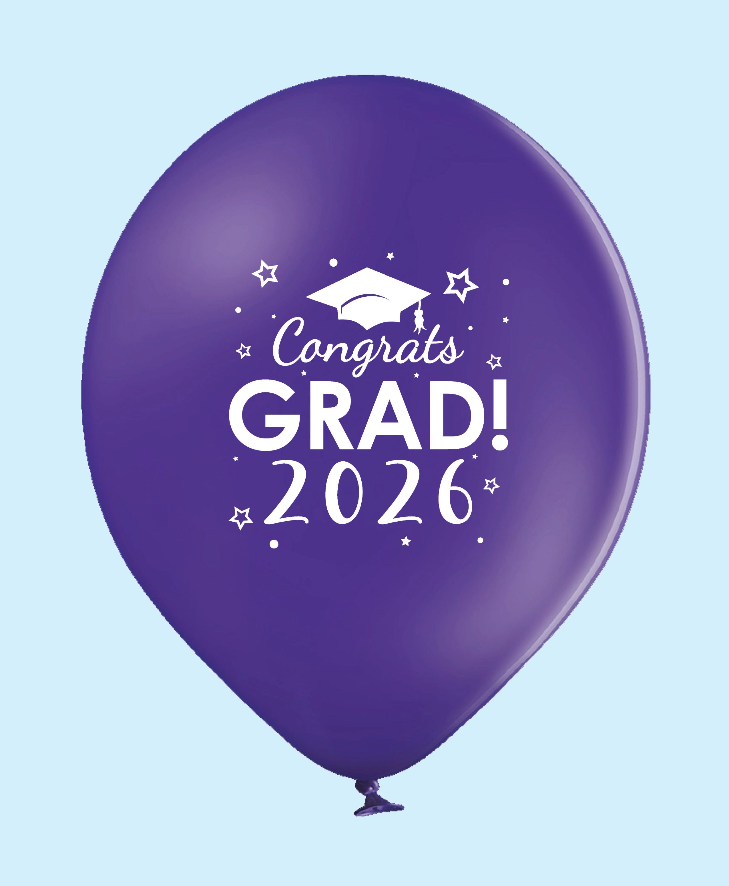 11" Congrats Grad 2026 Printed Latex Balloons 25 Count Purple