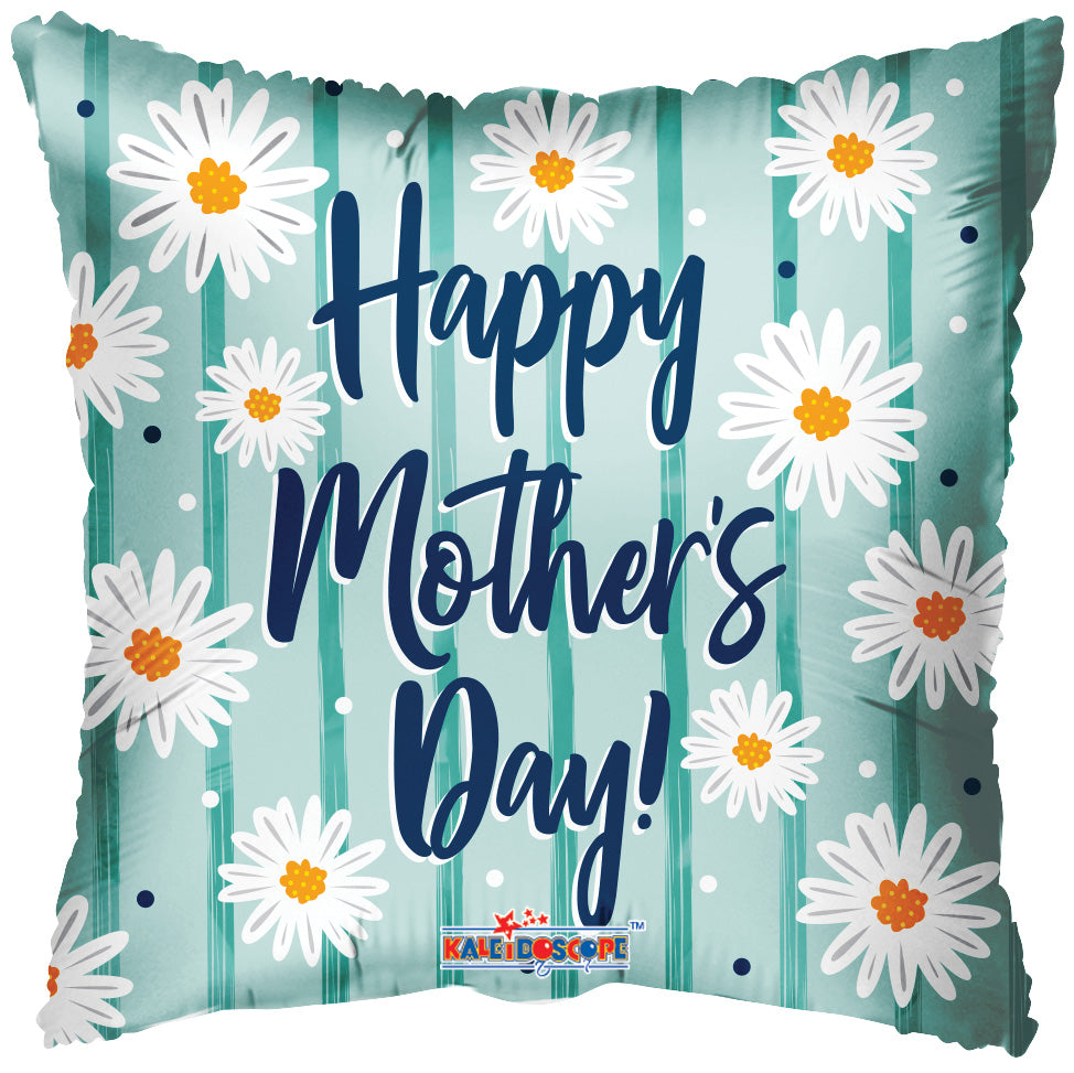 18" Happy Mother's Day Daisies On Mint Matte Foil Balloon