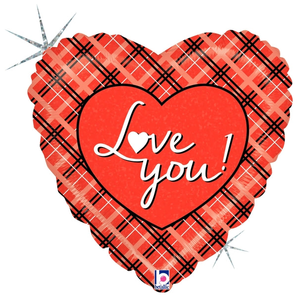 18" Holographic Balloon Packaged Love You Plaid