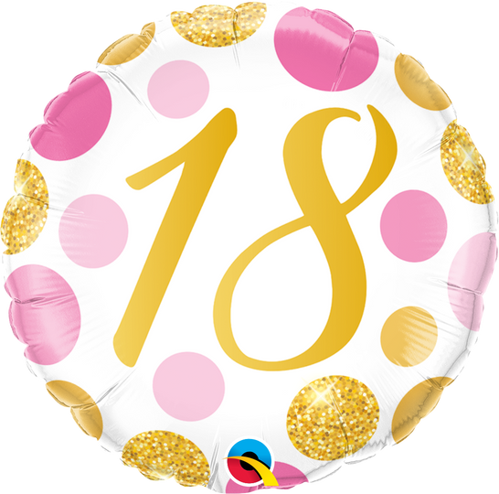 18" Number 18 Pink & Gold Dots Foil Balloon