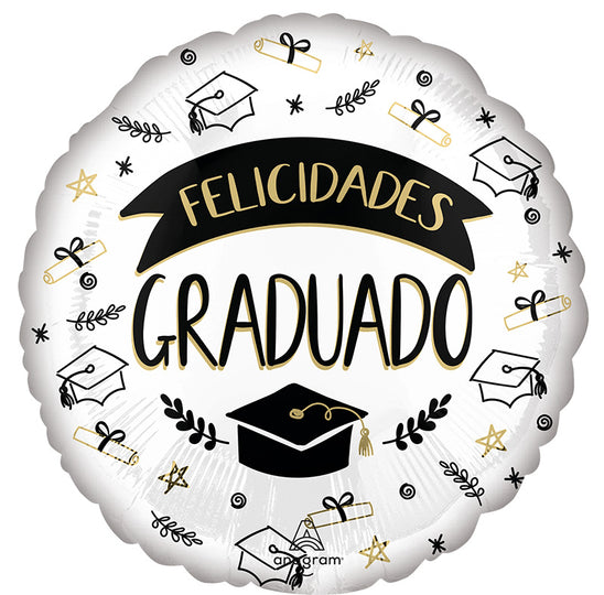 18" Sketched Felicidades Graduado (Spanish) Foil Balloon