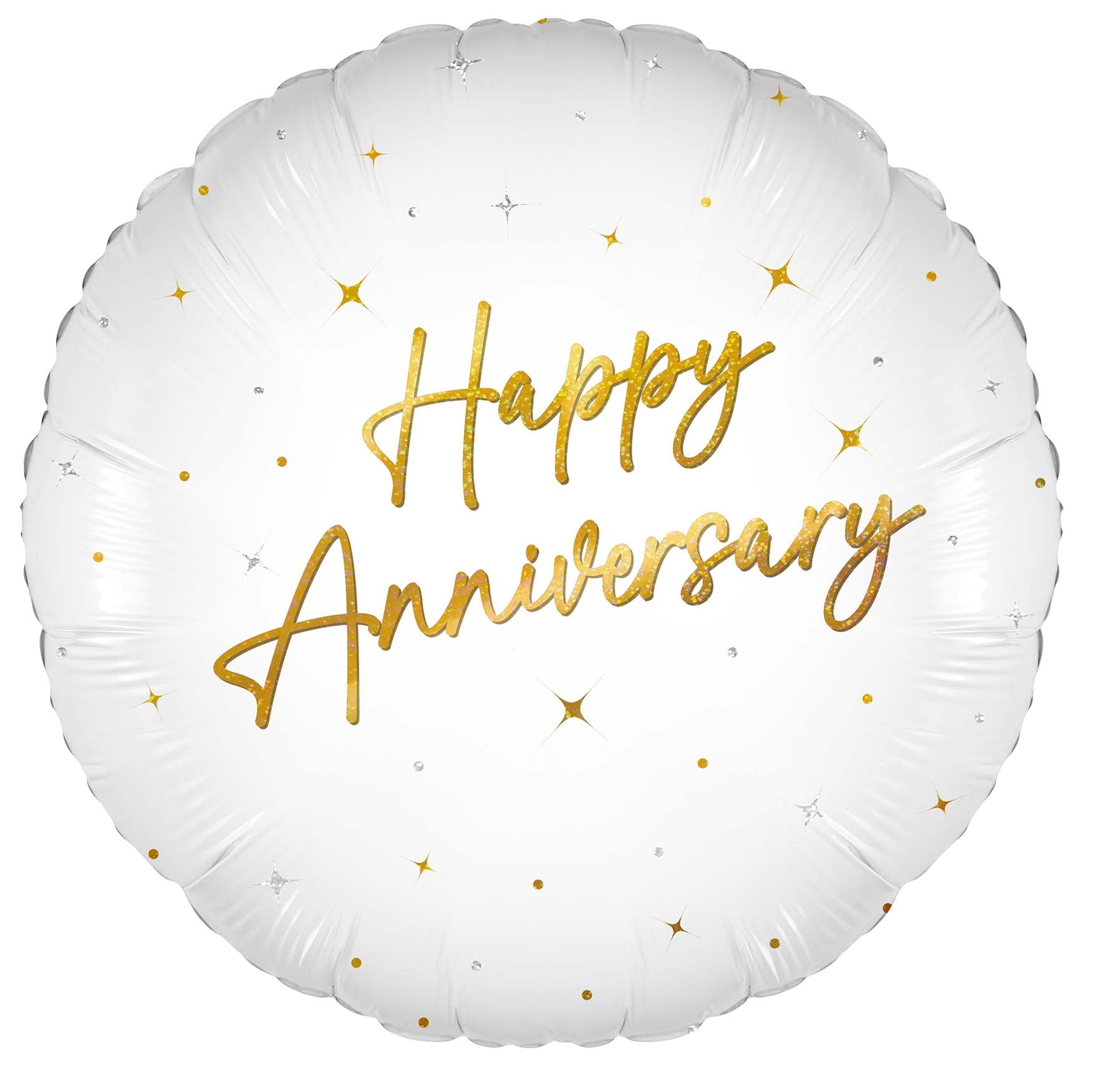 Celebrate love and milestones with this elegant 18-inch holographic foil balloon featuring white and gold sparkle accents. Premium Oaktree quality with dazzling holographic shine and long-lasting float time for memorable anniversary celebrations.
