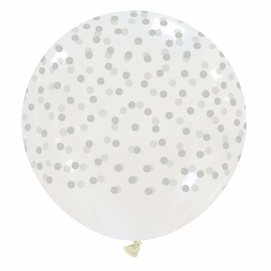 32" Confetti Rain Silver Print All Around (1 Per Bag) Cattex Brand Latex Balloons