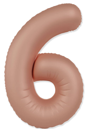 32" Inflated (40" Uninflated Approx) Number "6" Slimmer Design Matte Vintage Rose Brand Flexmetal