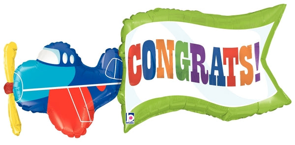 43" Foil Shape Balloon Packaged Airplane Congrats