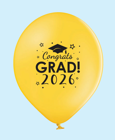 11" Congrats Grad 2026 Printed Latex Balloons 25 Count Yellow