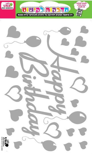 Hebrew Large Silver Birthday Sticker 35X23Cm